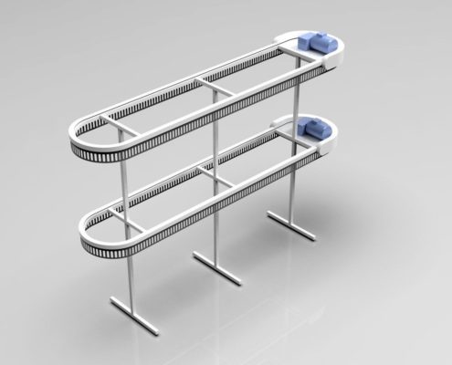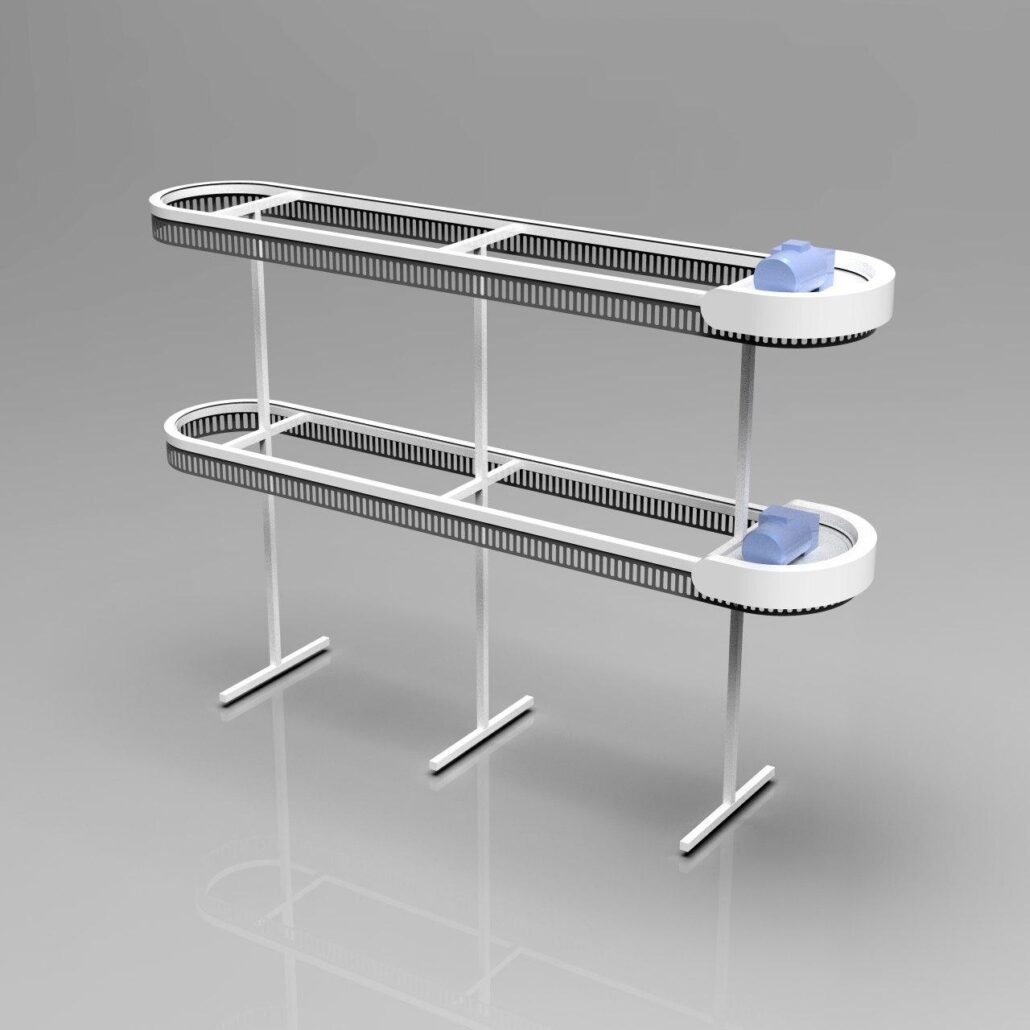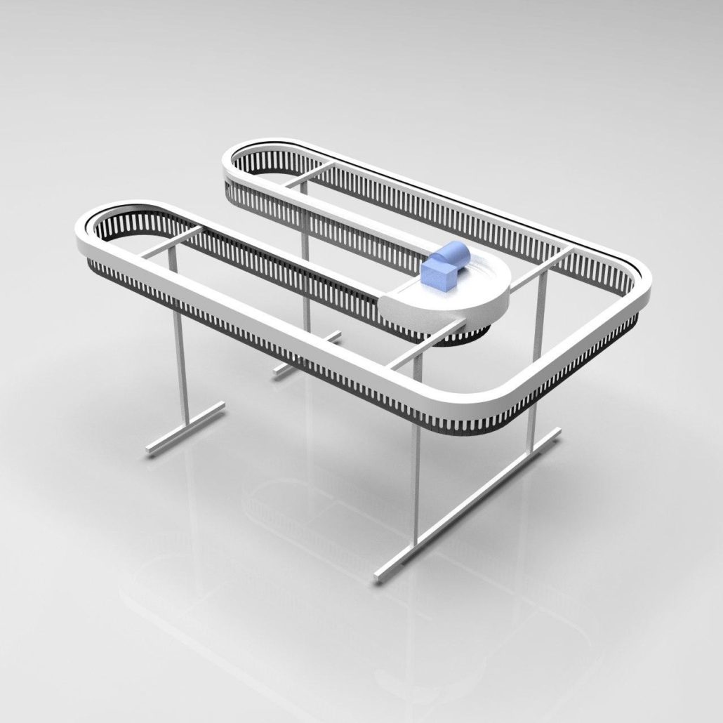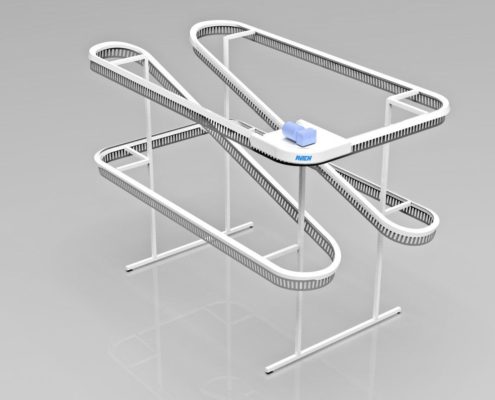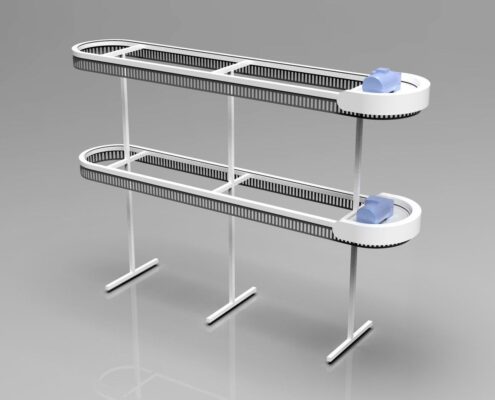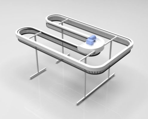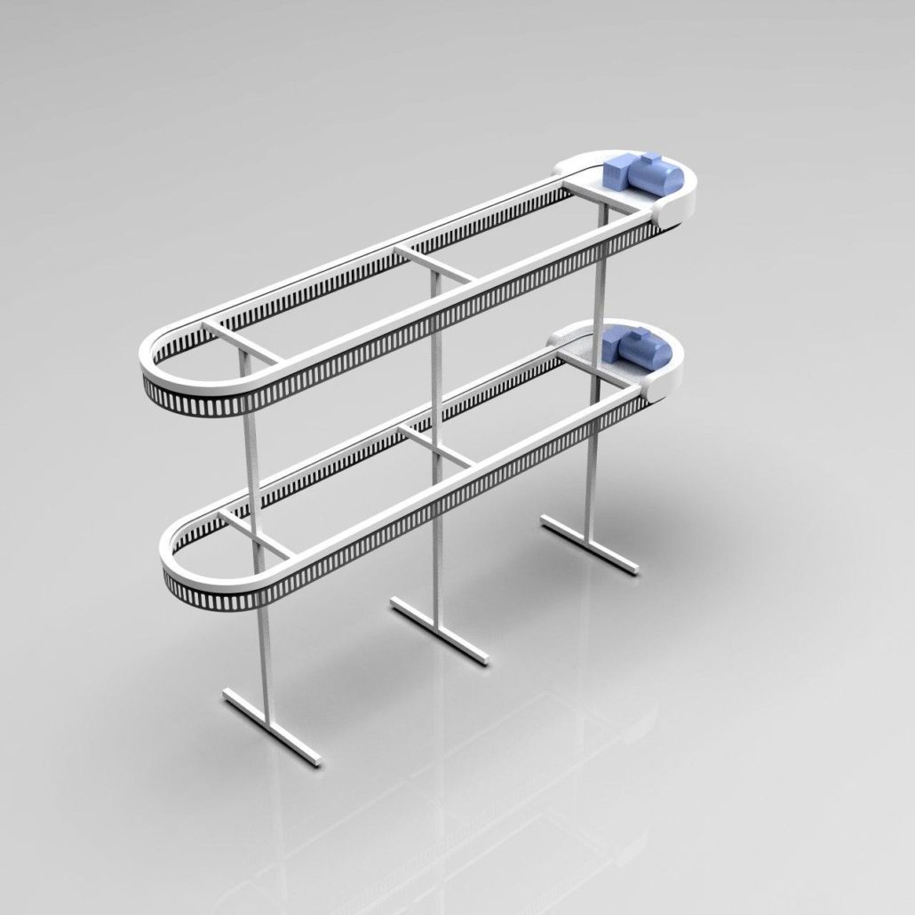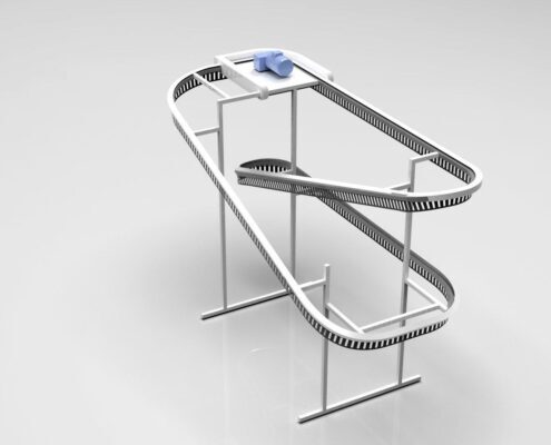 תבנית ה-U דומה לאות המתאימה. המסוע יכול להתבצע ב-2-3 רמות, כלומר פי 2-3 יותר בגדים מאשר מבנים חד-מפלסים. גובה (H) הוא 3200 מ»מ ו-4500 מ»מ, בהתאמה, באותו זמן האורך והרוחב של האלמנטים מתממשים בתצורה הרצויה.