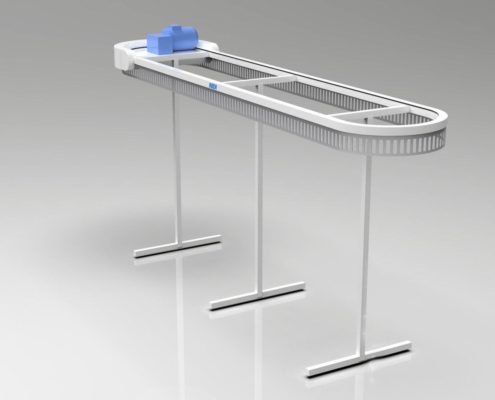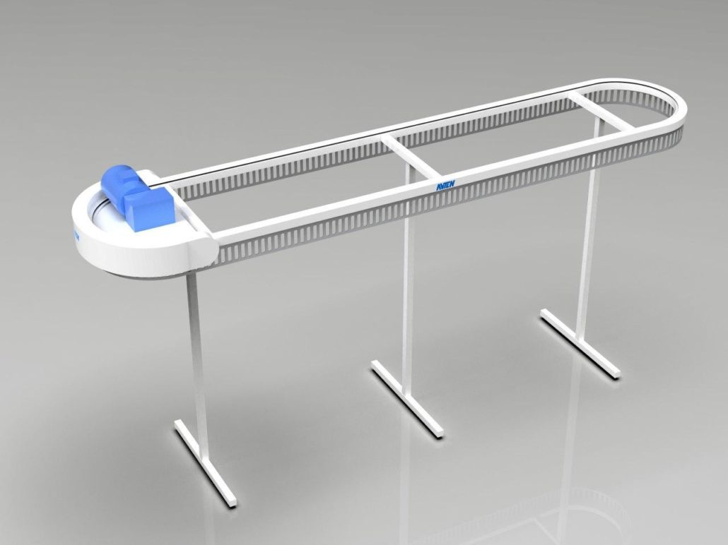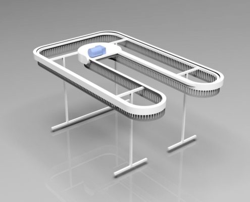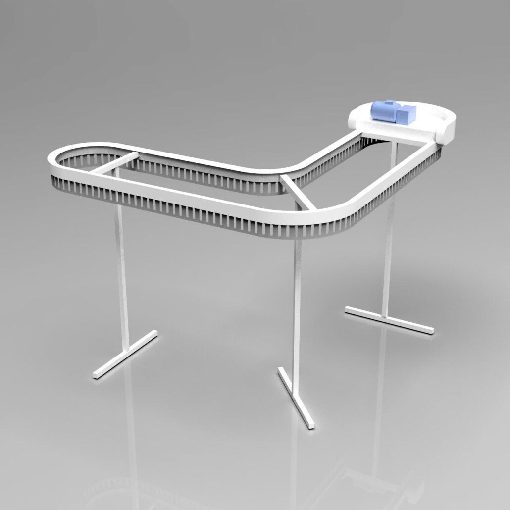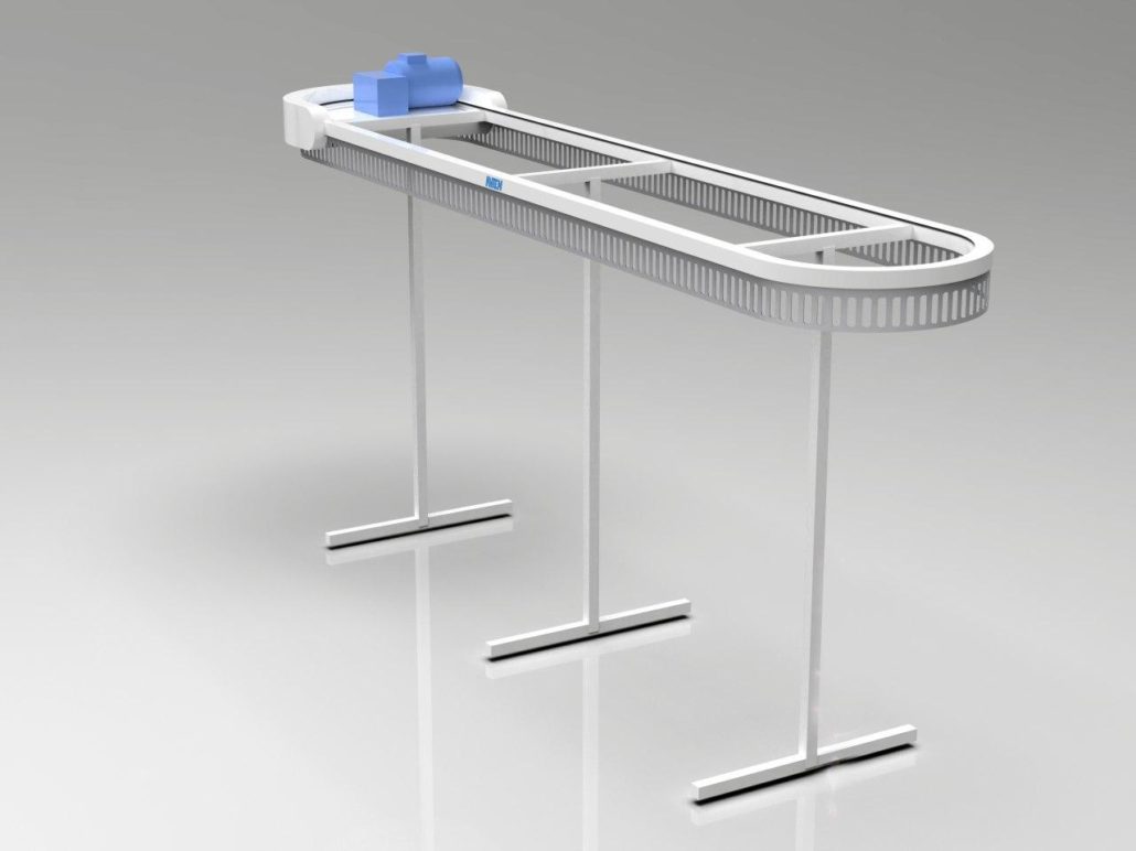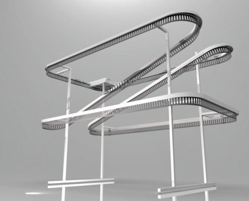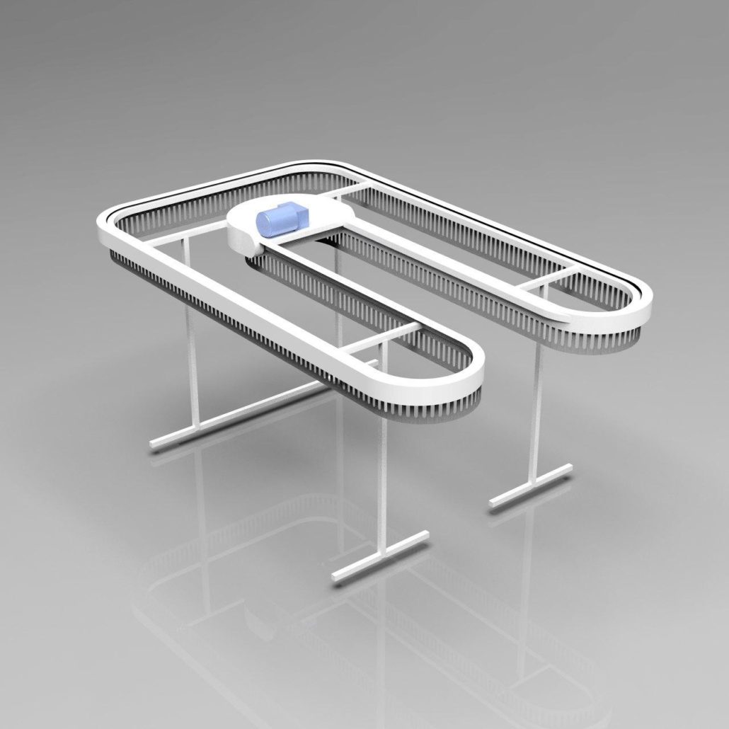 תבנית ה-U דומה לאות המתאימה. המסוע יכול להתבצע ב-2-3 רמות, כלומר פי 2-3 יותר בגדים מאשר מבנים חד-מפלסים. גובה (H) הוא 3200 מ»מ ו-4500 מ»מ, בהתאמה, באותו זמן האורך והרוחב של האלמנטים מתממשים בתצורה הרצויה.